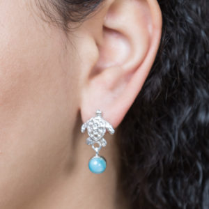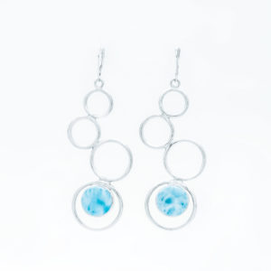This Semi-Precious Stone is attaining an important worldwide recognition, for its rarity and the beauty of its coloring. Larimar Factory is a brand that specializes its workshop in the creation of marvelous jewelry in Larimar, unique, elegant and refined pieces that are set in gold and silver, made by Dominican designers with exquisite and exciting designs. This exclusive earring is treasured as a most original and memorable souvenir of a visit to Dominican Republic.